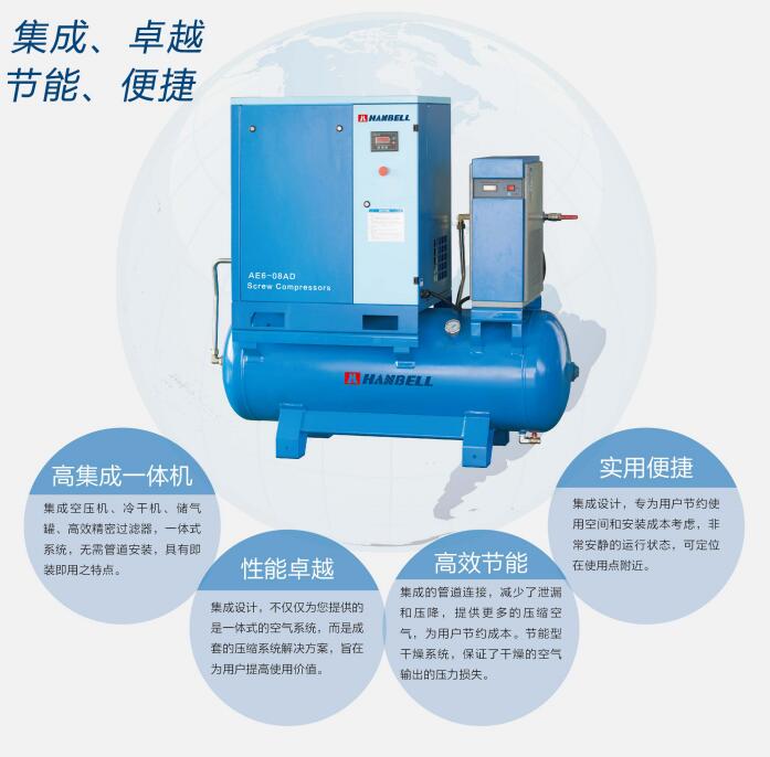 2,性能卓越:集成设计,不仅仅为您提供的是一体式 的空气系统,而是成套的压缩空气解决方案,旨在为用户提高使用价值。